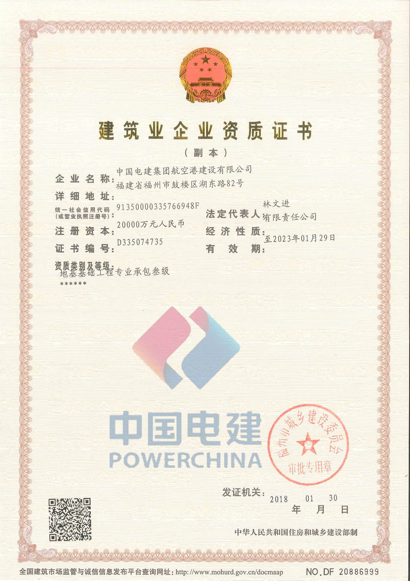 中国电建集团航空港建设有限公司地基基础工程资质证书副本