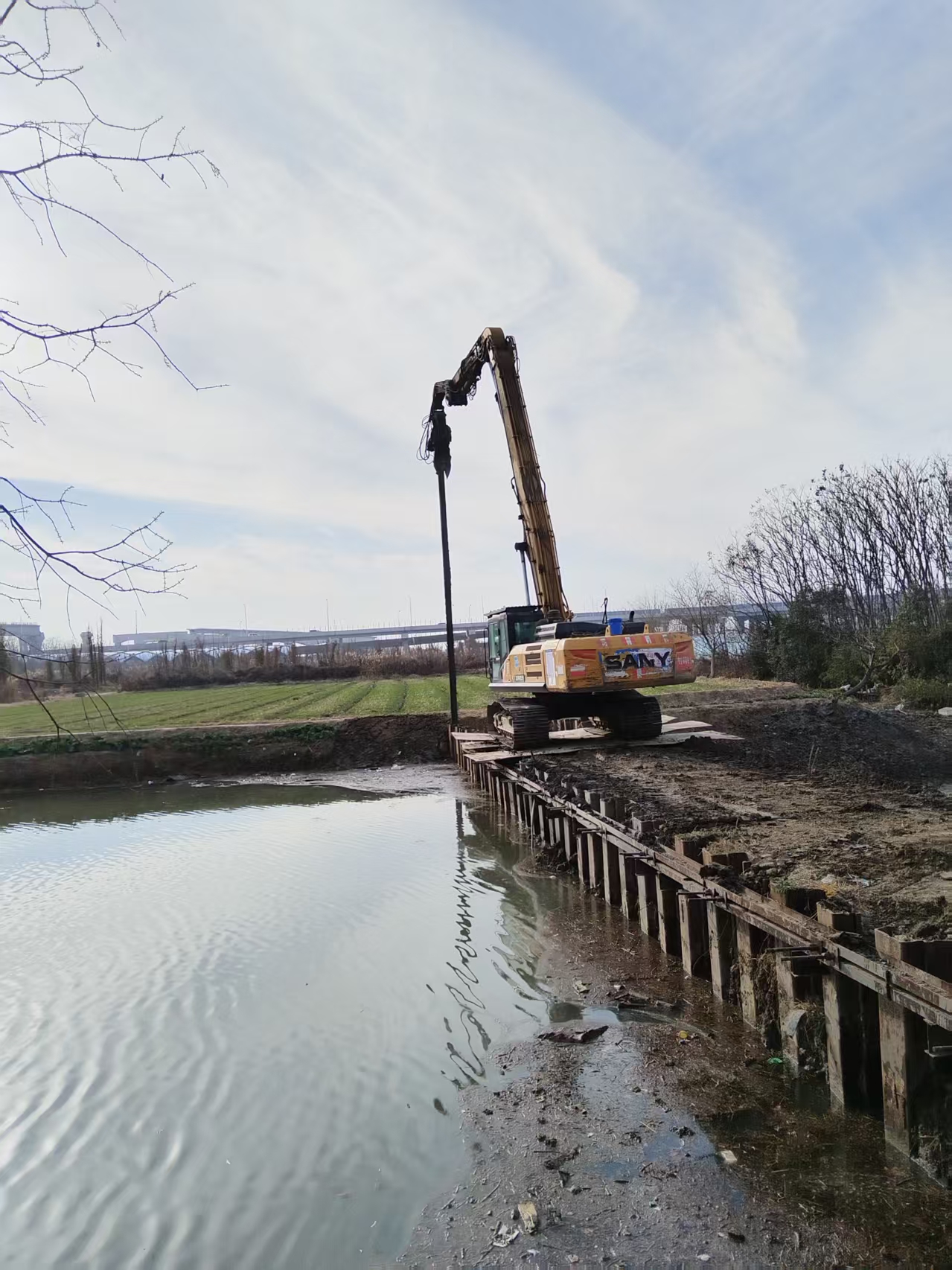 1月14日上午,随着人民塘水闸外河围堰第一根钢板桩的拔除,由公司承建的上海浦东国际机场四期二级排水改扩建工程(河道及水闸工程一标段)人民塘水闸围堰拆除工作正式启动,意味着人民塘水闸将进入使用阶段。 人民塘水闸共设两道围堰,分别为外河围堰32米、内河围堰113米长,围堰宽4米,围堰均采用双排钢板桩黏土填芯,内外河围堰起到分隔人民塘和浦东机场围场河水流,发挥着干地施工水闸的作用。 人民塘水闸外河围堰拆除施工计划4天,外河围堰拆除将为内河围堰拆除提供经验。外河围堰拆除后,项目部将联合上海机场指挥部推动水闸临时用地归还工作。